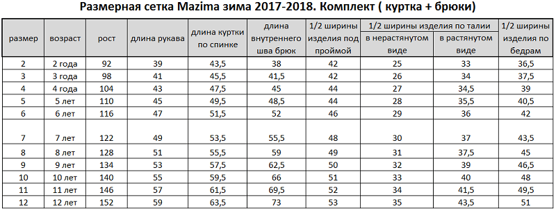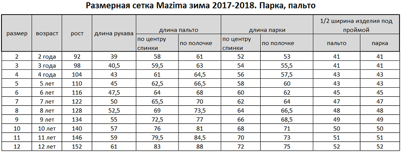 Артикул WP82001 - все размеры +6 см, кроме 98 (идет в размер).
